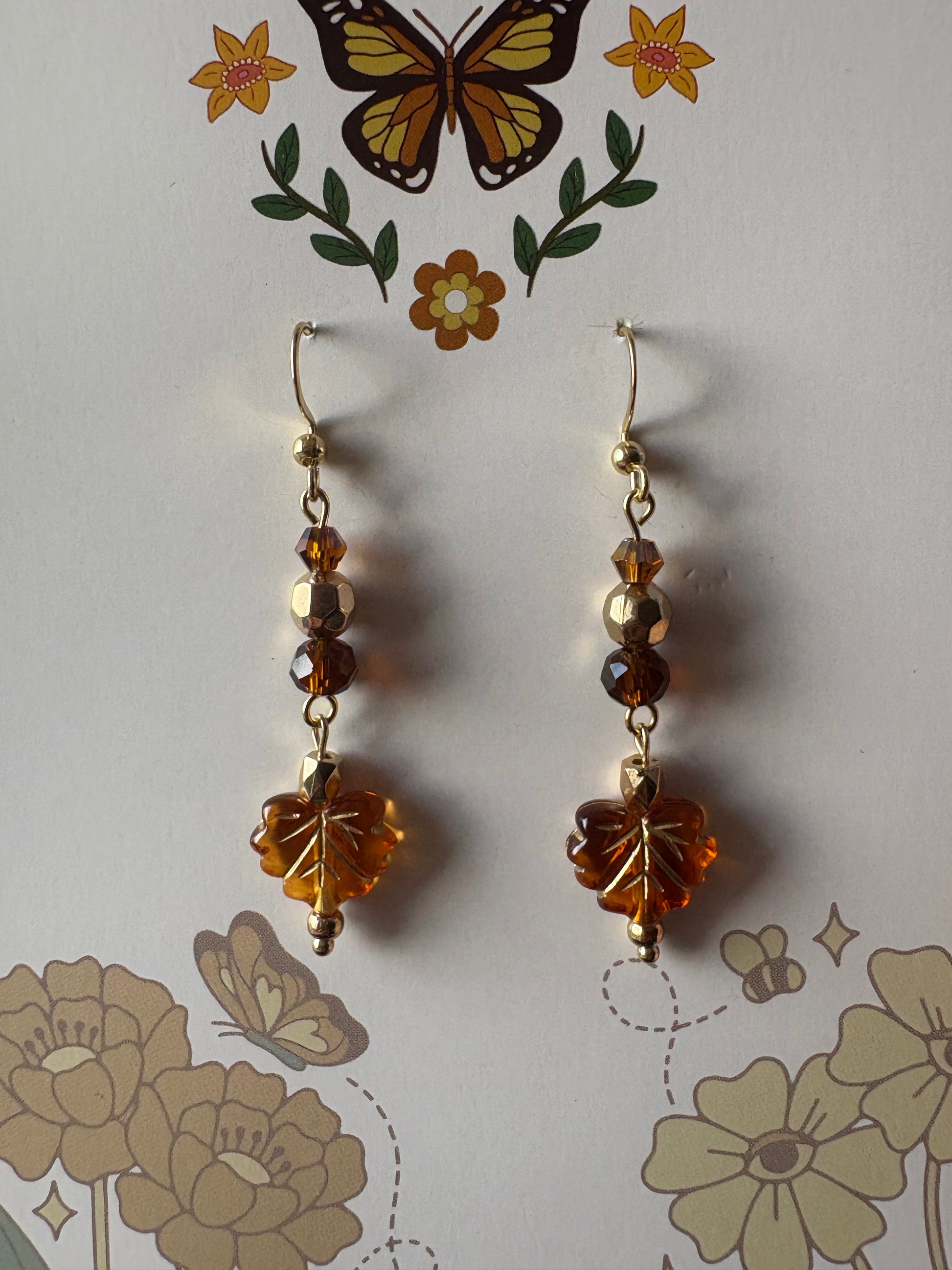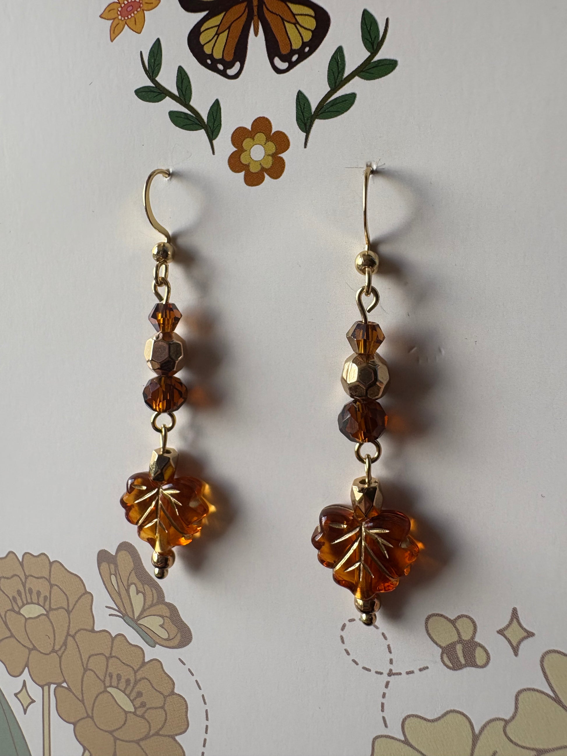 inspired by the song California Dreamin, there earrings feature retro style beads and gold painted maple leaves!🍁🌙🎸