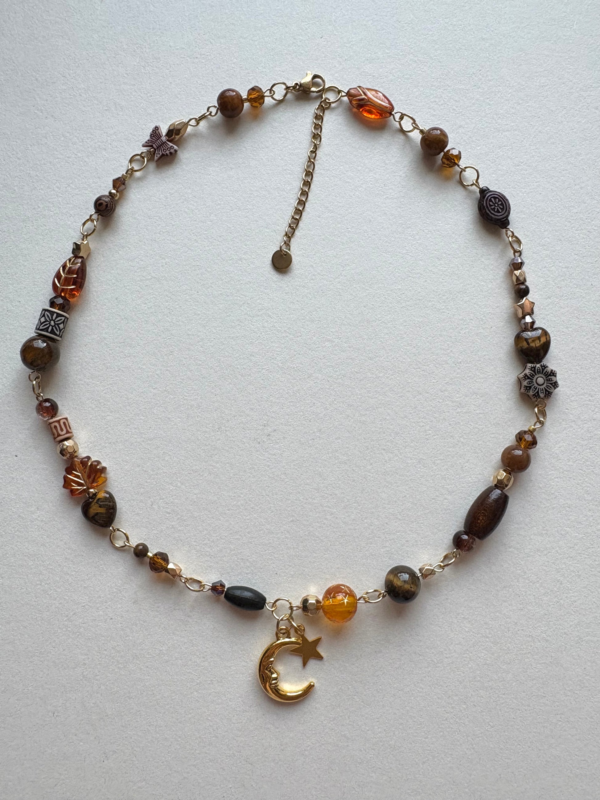 Indulge in retro charm with our Sunset in the 70s Bohemian Necklace. 🌙Boasting 18k gold plating and a combination of earthy toned and gold star beads, this necklace is a nod to the era of Stevie Nicks and bohemian fashion.✨ Complete with a whimsical moon and star charm, this necklace will add a touch of nostalgia to any outfit.